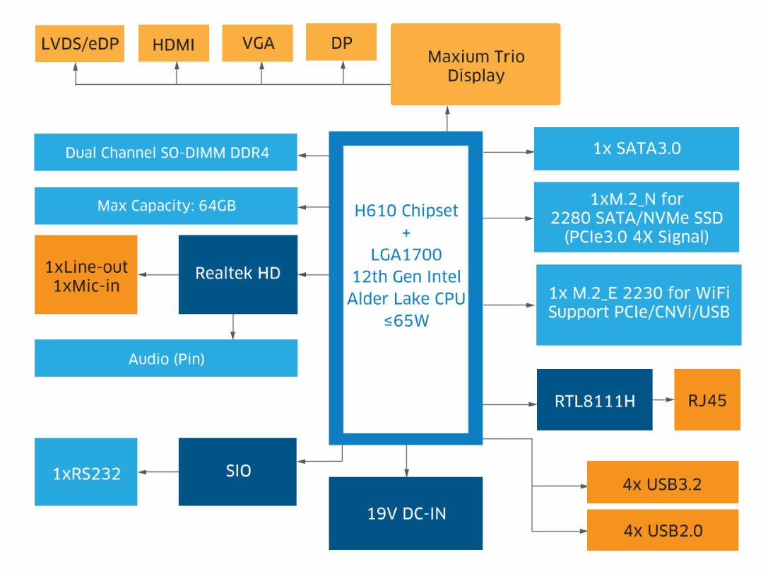 Storage: SATA3.0, M.2 for SATA/NVMe SSD (PICe4X Signal)